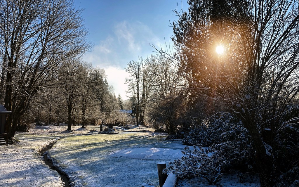 Today, I woke up to snow on the ground. I always wondered what our property would look like under a beautiful white blanket early in the morning.